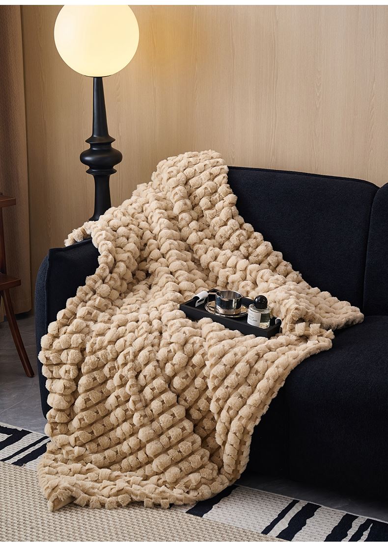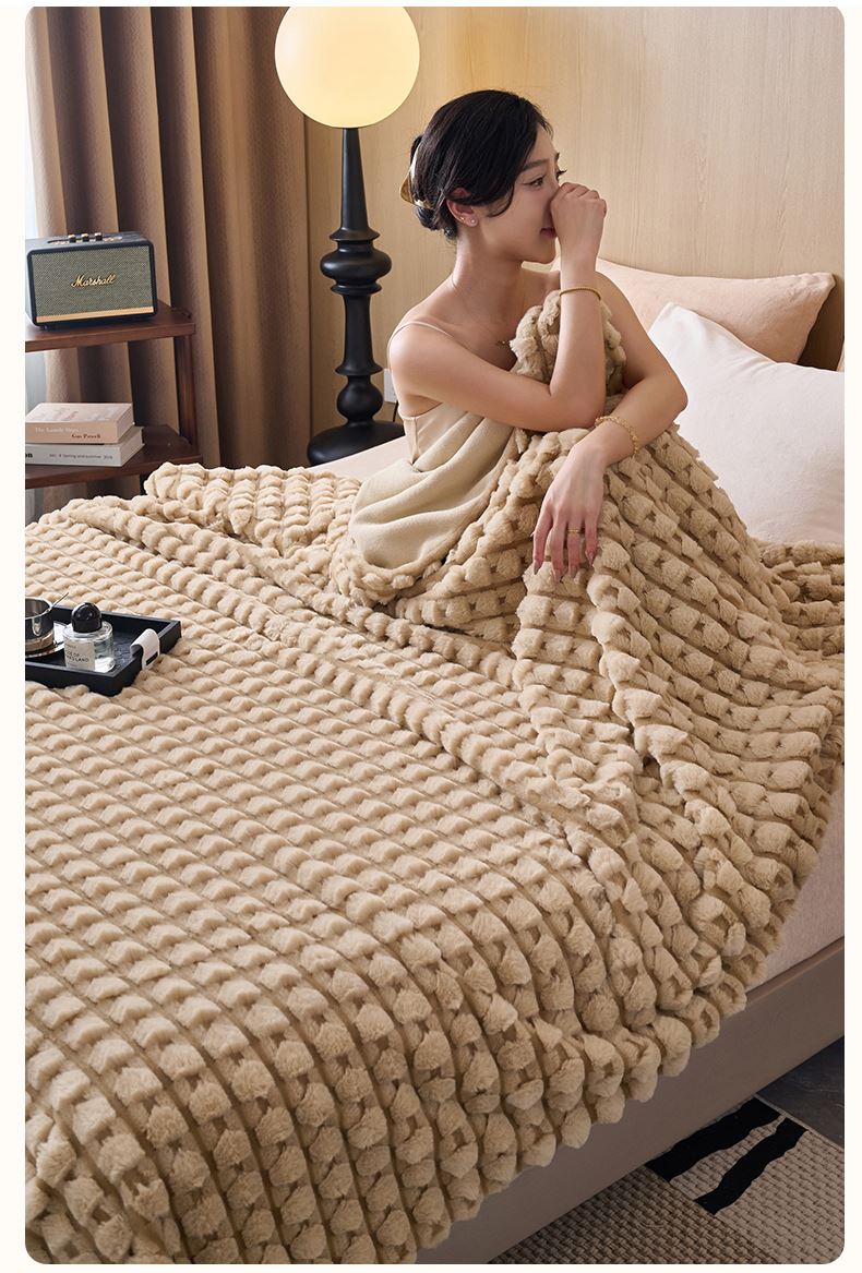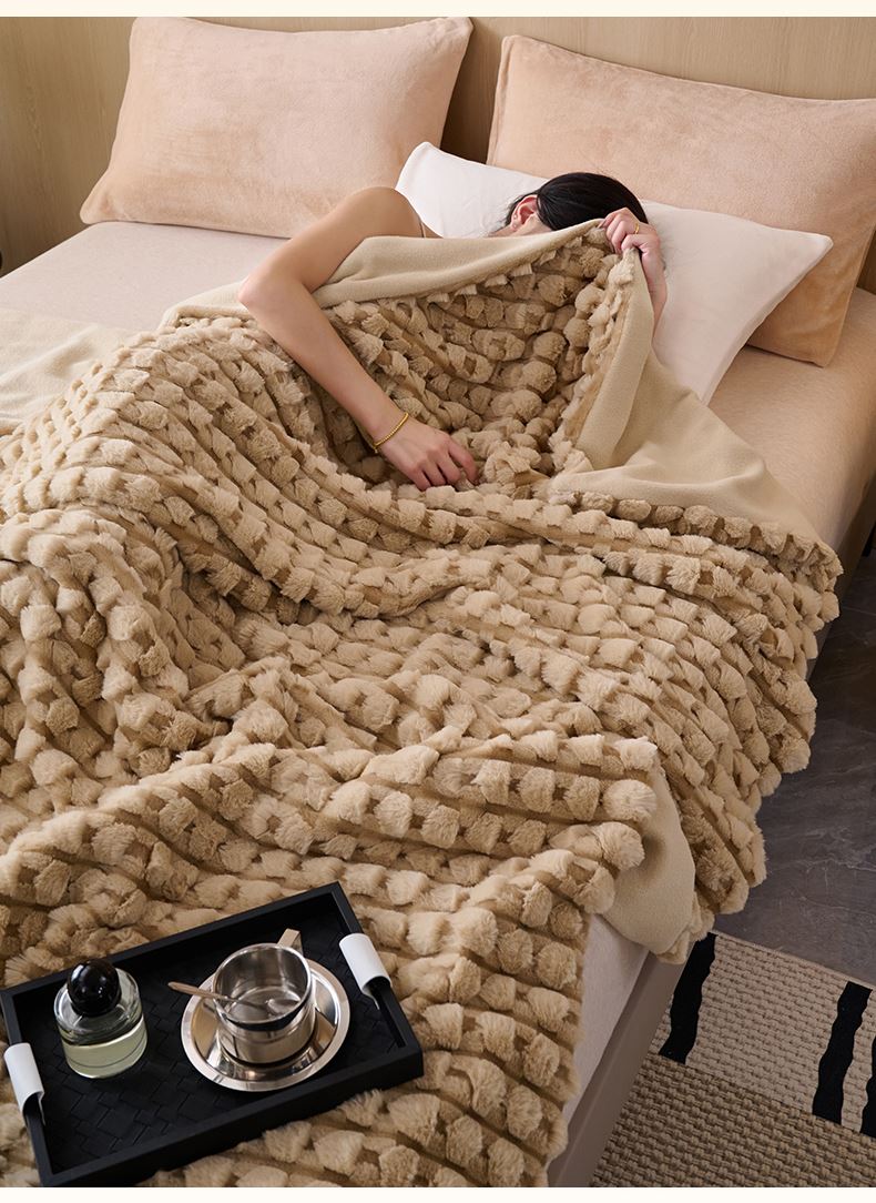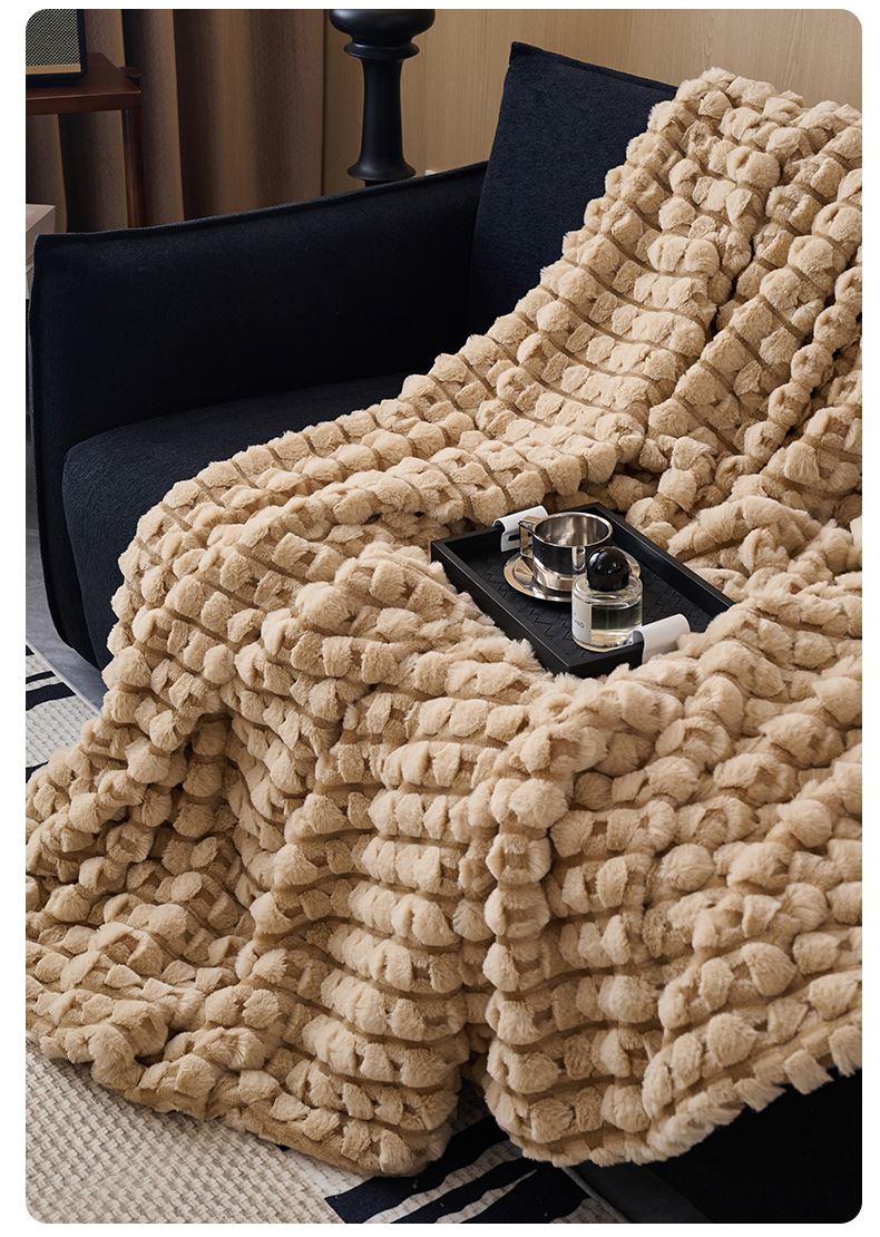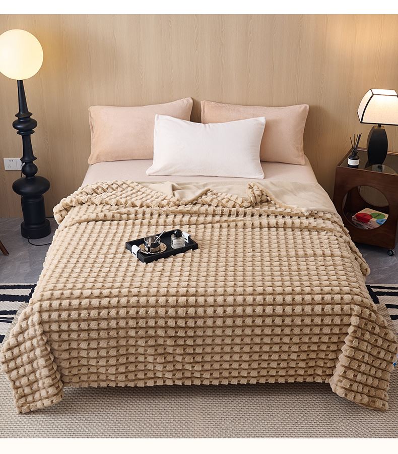 花色:提花兔毛毯-駝色、提花兔毛毯-白色、提花兔毛毯-深灰、提花兔毛毯-紫色、提花兔毛毯-棕色