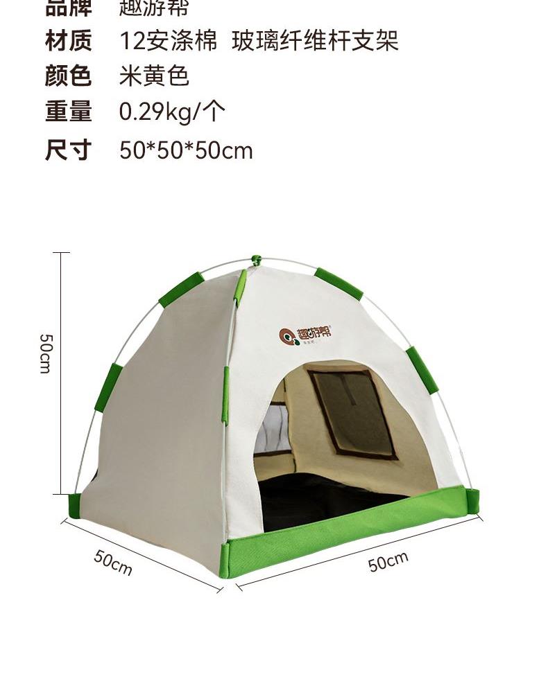 材質 12安滌棉,玻璃纖維桿支架 尺寸 50*50*50cm 顏色 米黃色 凈重 0.29/個 超大空間 肆意臥躺 加厚面料 四季通風 立體加粗骨架 支撐力強 耐抓 耐磨 舒適透氣 可水洗