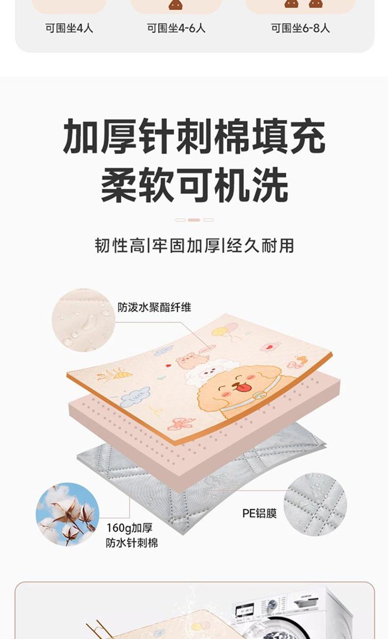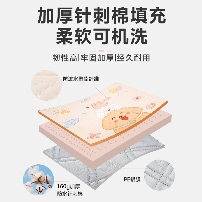 材質 春亞紡+160g針刺棉+抓絨雙層鋁膜 顏色 萌寵嬰膚白 尺寸 200*200cm 重量 1.27kg 春亞紡環保面料、親膚材質無異味 5層加厚超聲波工藝、抗拉耐扯加厚更耐磨 抗污不粘草拍拍 抖抖就干凈 方便清洗、可機洗 升級加厚160g針刺棉 防水防潮耐磨抓絨加厚PE鋁膜底