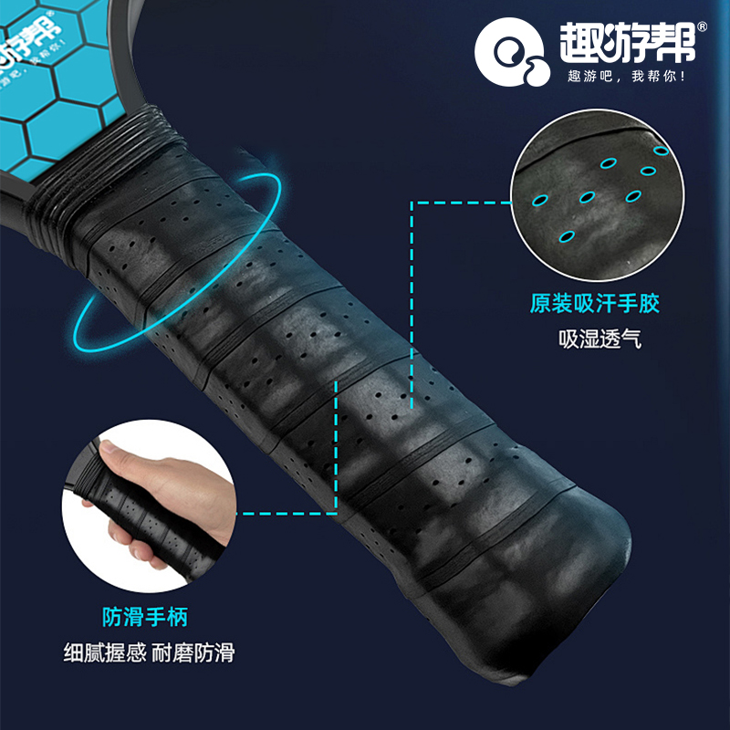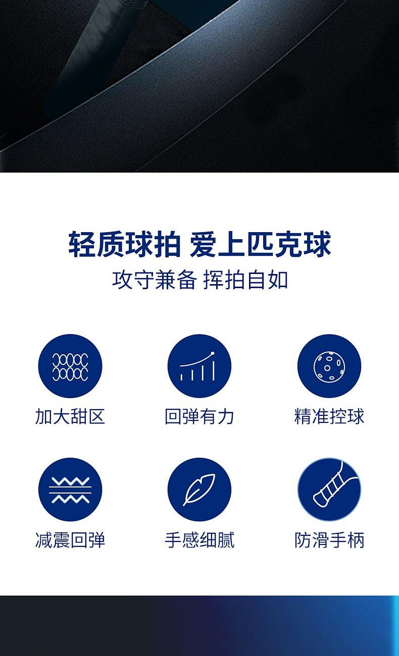 材質(zhì) 玻璃纖維 重量 220-230g 尺寸 40*20*1cm 配件 2拍+4球+1收納包+1紙盒 顏色 極黑 省力借力|超高容錯|舒適護臂|旋轉(zhuǎn)加持 掩蓋技術(shù)不足,放大防守與旋轉(zhuǎn)優(yōu)勢,尤其適合追求輕松上手和持久舒適體驗的玩家 寬甜區(qū)球拍,擊球穩(wěn)定易控制,新手友好 專屬背包收納,說走就走,球場公園隨心玩 精選耐用材料,經(jīng)久耐打,歡樂持久