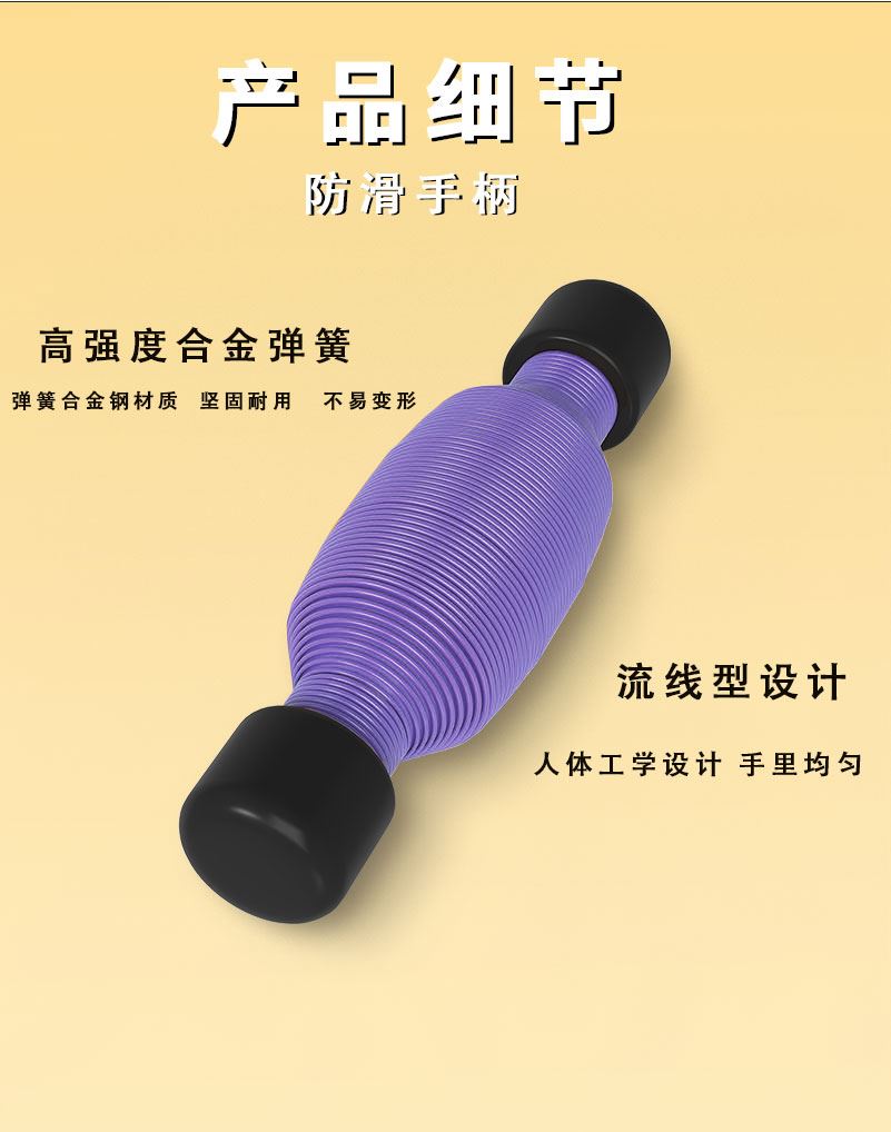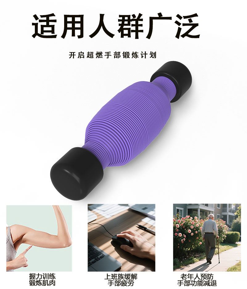 材質 高強度合金彈簧 顏色 香芋紫 尺寸 25*46*160mm 重量 凈重113g,毛重178g 采用特殊合金彈簧,不易變形、不易疲勞,使用壽命遠超普通彈簧 回彈較準,提供穩定、一致的手感反饋,每一次擠壓都扎實有力,訓練更高效 告別沉悶的黑色/灰色,溫柔的香芋紫,瞬間提升辨識度 無需復雜調節,拿起即練,強化手部力量(辦公室、家中、旅途皆可)