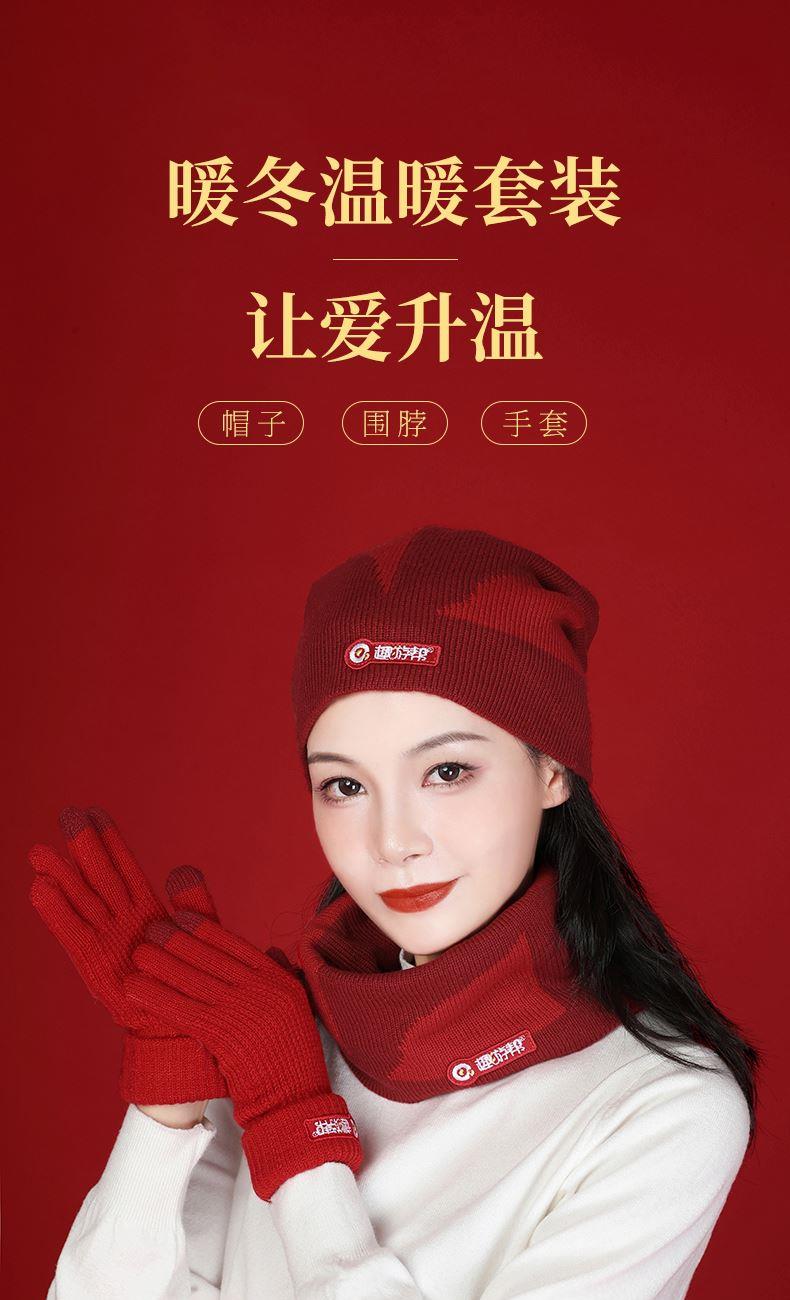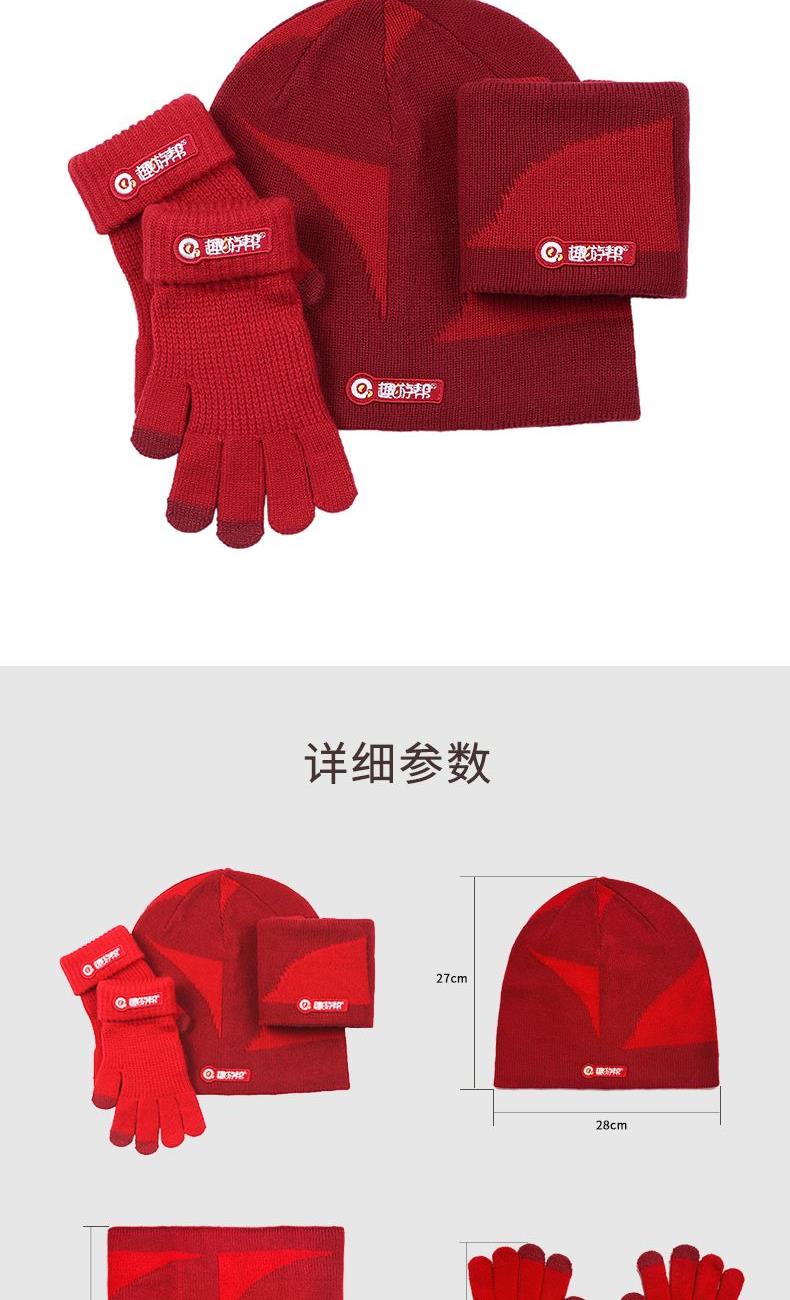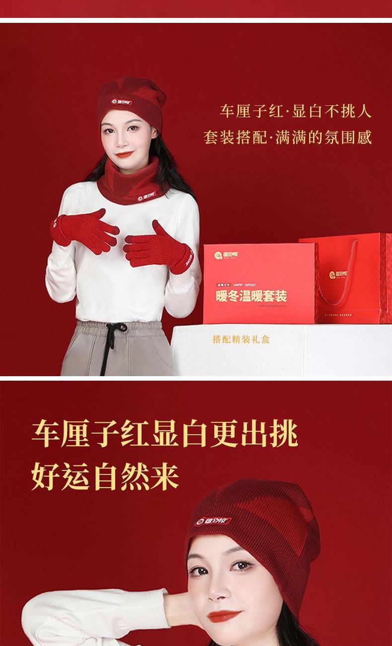 材質 圍脖:腈綸 、 圍脖:腈綸 手套:95%腈綸3%滌綸2%導電絲 顏色 車厘子紅 規格 帽子~28*27cm 、圍脖~26*24cm 手套~9*24cm (展開尺寸) 組合 帽子 、圍脖、手套、外盒、手提袋 時尚科技面料,親膚、鎖溫、柔軟、高彈 全新升級材料,手套三指觸屏,兼容各種設備 奢華禮盒包裝,送禮自用都溫暖 車厘子紅戴出好膚色
