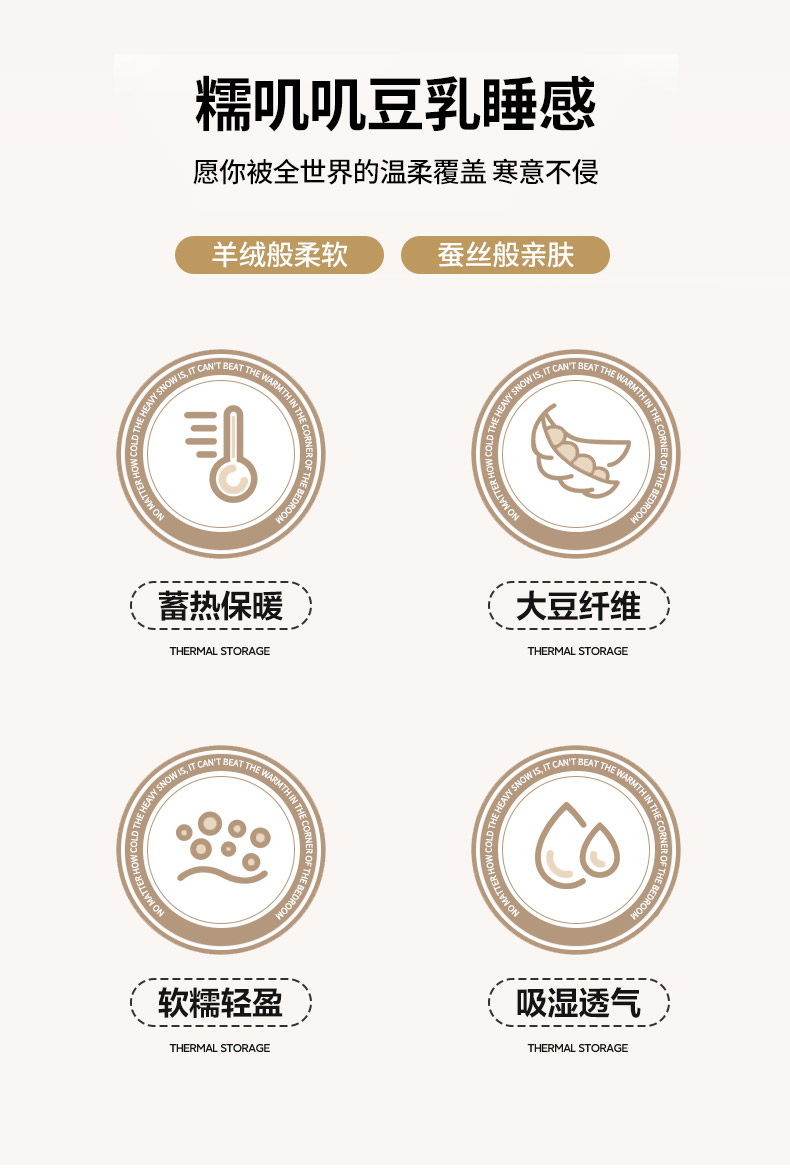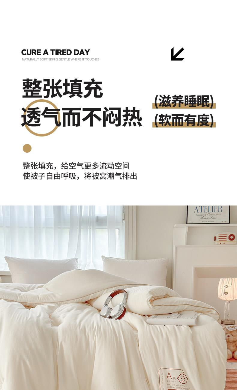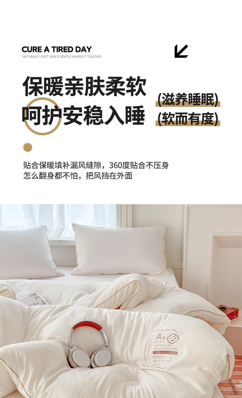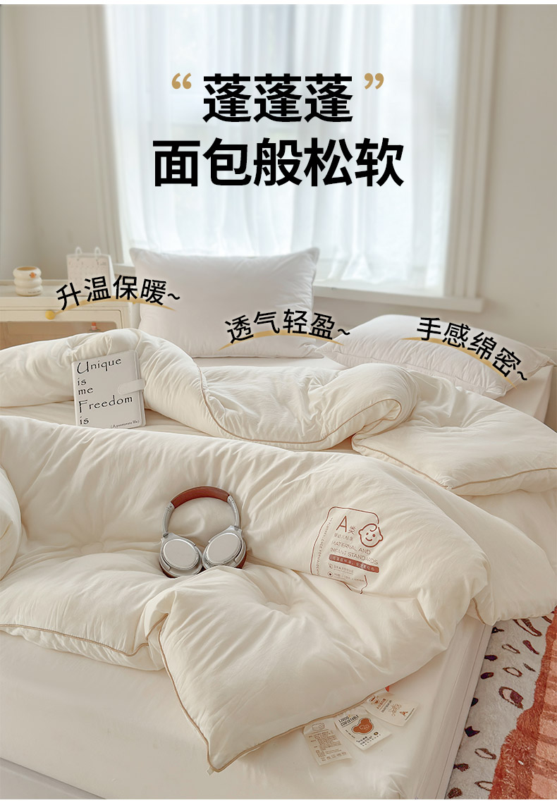 產(chǎn)品規(guī)格:180*220cm(6斤) 花色:baby-米白、baby-豆沙、baby-英灰 面料:聚酯纖維 填充物:10%聚酯纖維90%聚酯纖維 產(chǎn)品賣點(diǎn):軟糯滋養(yǎng)大豆被,暖暖的像冬日太陽,倍感舒心。纖維整張?zhí)畛洌D贪銣貪櫍笟獠粣灍帷8呖酥孛媪希灰灼鹎颍H膚柔軟。