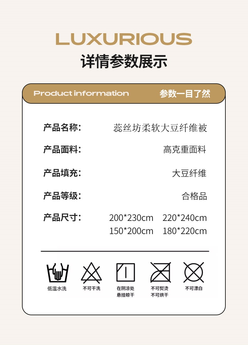 蕊絲坊家紡新款柔軟大豆纖維被180*220cm6斤