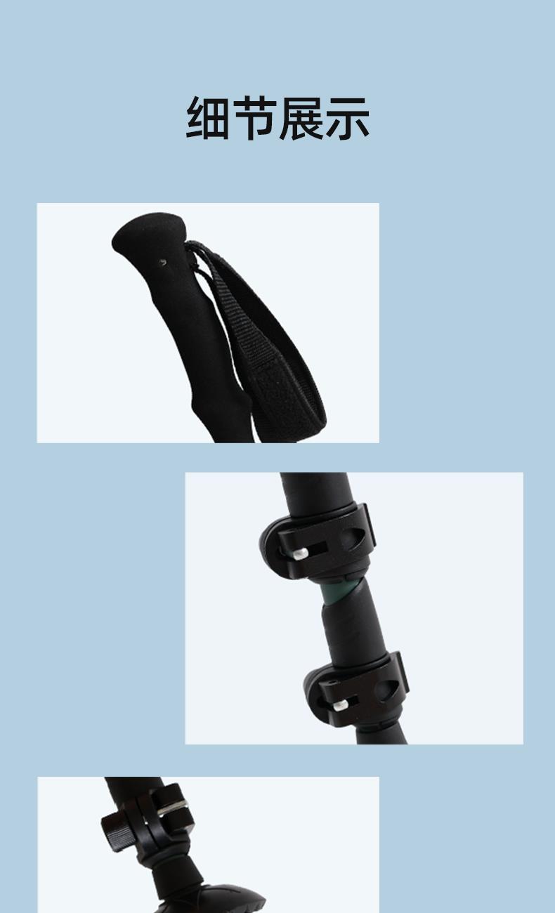 材質 杖身: 碳纖維、杖尖:鎢鋼、手柄 顏色 霧面青墨 尺寸 63-136cm 鎖緊 方式 外鎖 節數 三節 包裝 獨立紙箱+外箱 重量 0.2kg,毛重0.35kg 選材講究,只為手杖更輕便 抓地紋路設計,貼合各種路面保障行走更穩固更安全 新型外鎖,順時針旋轉即可解鎖/開鎖 三節伸縮,攜帶使用便攜