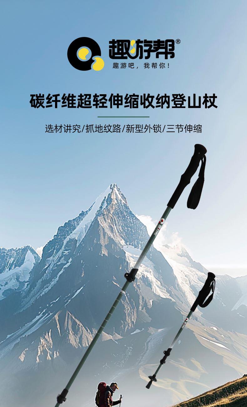 趣游幫碳纖維超輕伸縮收納登山杖(Q615)