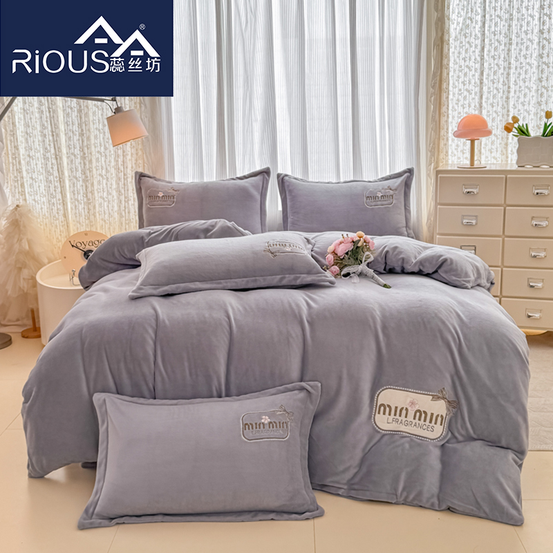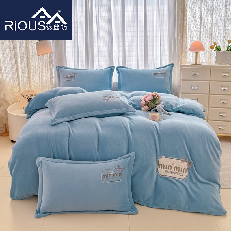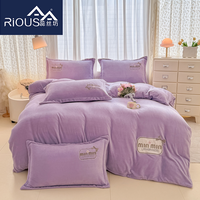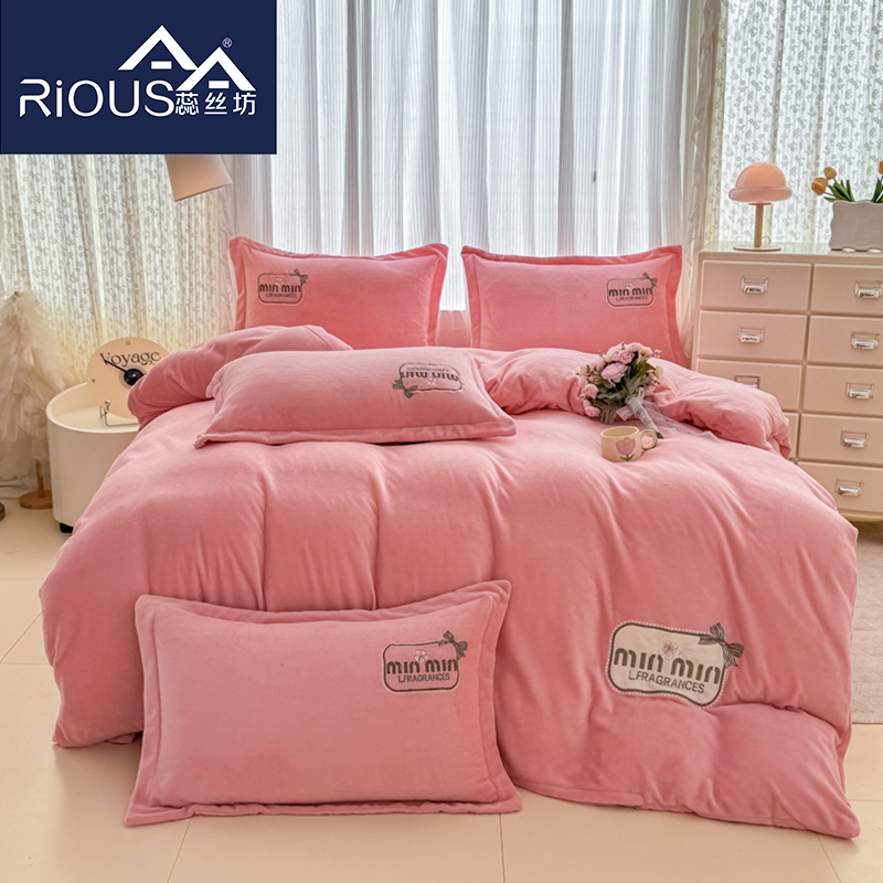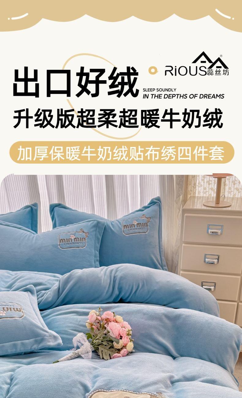蕊絲坊家紡心動牛奶絨貼布繡花四件套