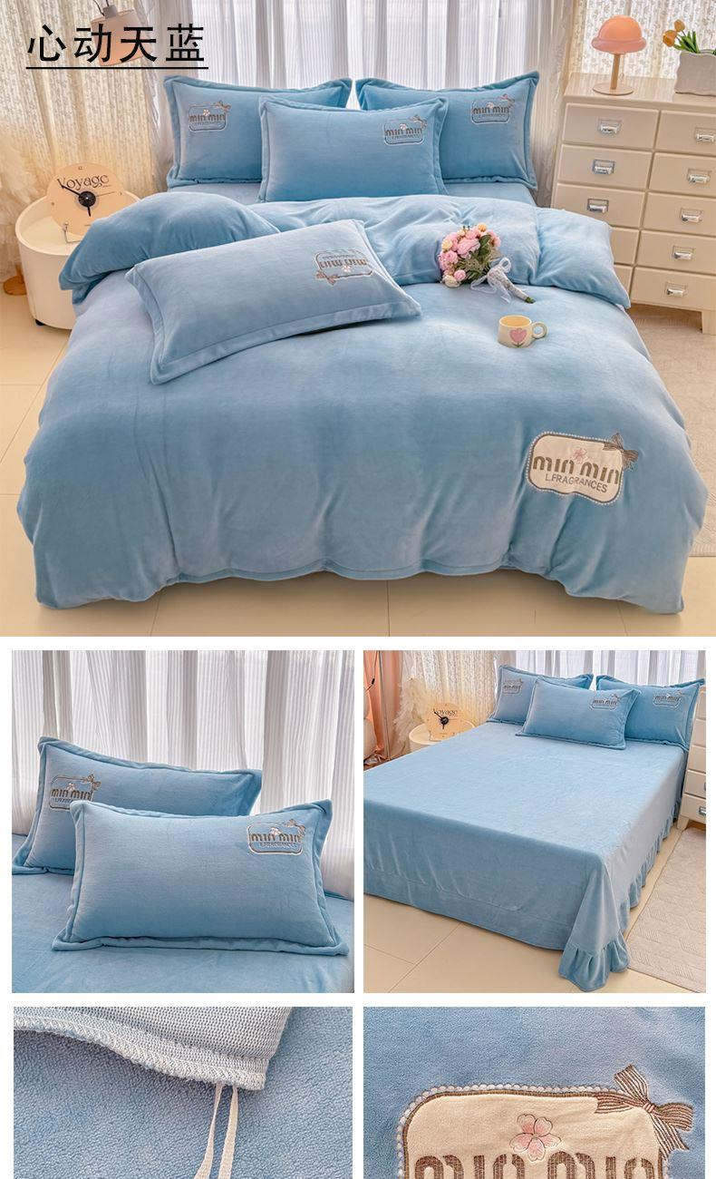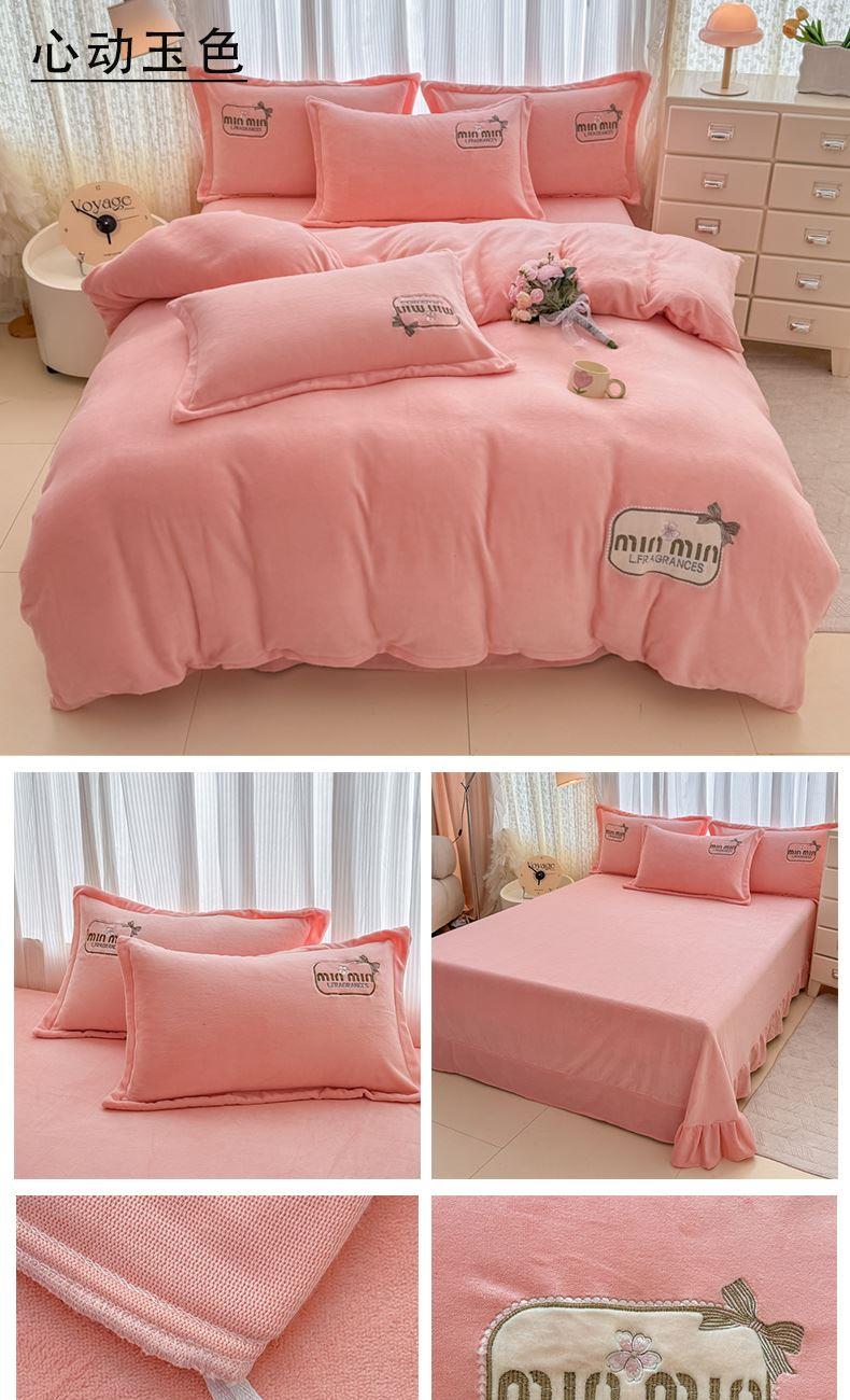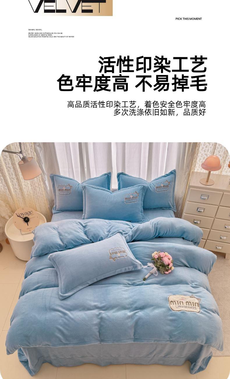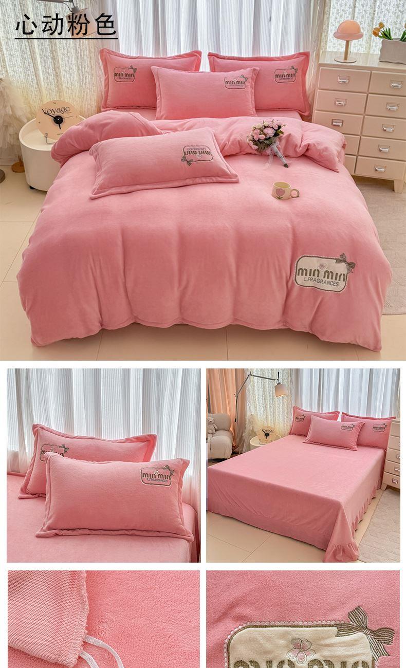 蕊絲坊家紡心動牛奶絨貼布繡花四件套